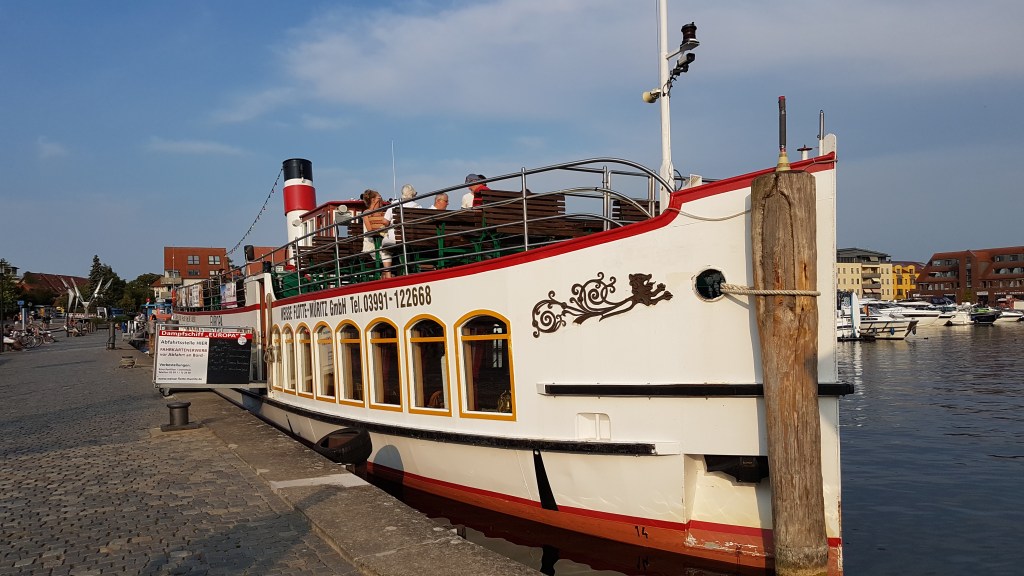 Am Stadthafen starten die Boote der Weißen Flotte und der Blau-Weißen Flotte zu ihren Fahrten über die Müritz und ihre Nachbarseen.