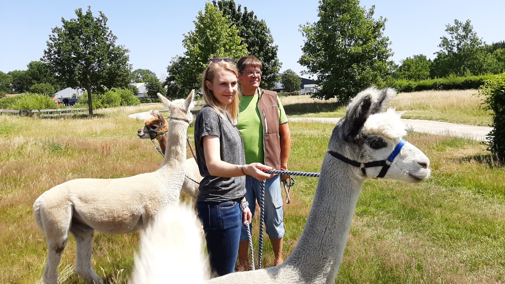 Ein Highlight ist für uns ein Spaziergang mit den Fleesensee Alpakas. Wegen ihres sanften Wesens gelten die südamerikanischen Verwandten der Kamele als „Delfine der Weide“.