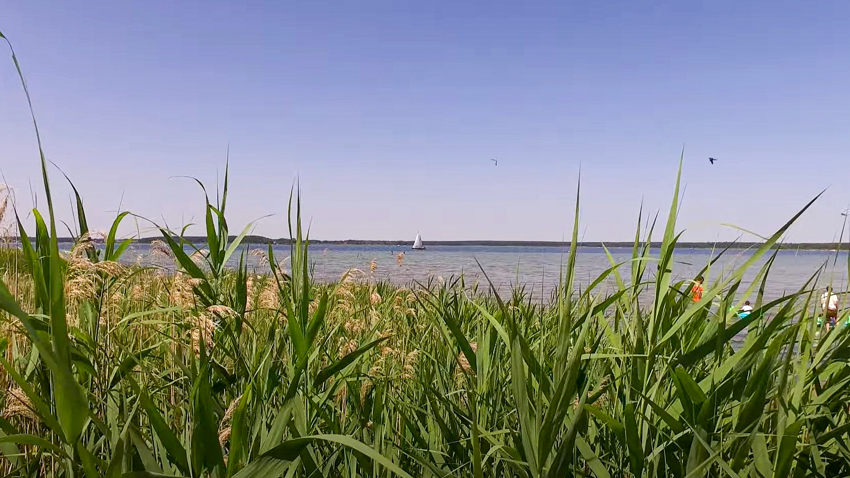Die flache Bucht am Fleesensee ist ideal für Kinder, weil hier kaum Motorboote fahren – das Wasser ist nicht tief genug. Die Kleinen können also gefahrlos plantschen und baden.