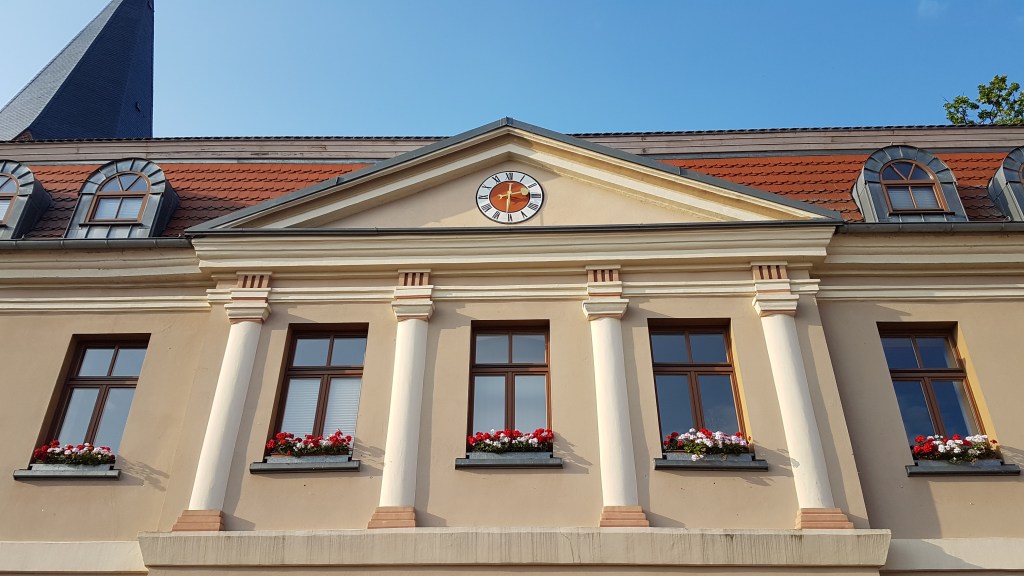 Das stolze Rathaus von 1805 am Marktplatz wurde 1999 restauriert und 2020 mit einem neuen Anstrich versehen.