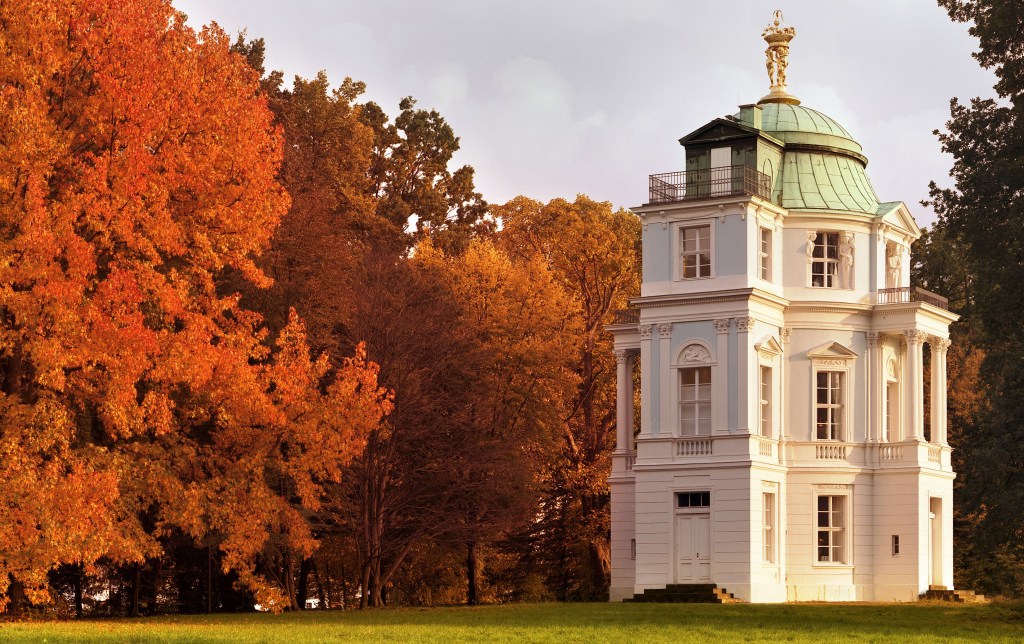 Im nordwestlichen Teil des Gartens schauen wir bei Königin Luise vorbei, der früh verstorbenen Ehefrau Friedrich Willhelms III, die als erste „Königin der Herzen“ in die Geschichte einging. Der trauernde Witwer ließ ihr im Park ein Mausoleum errichten. In Form eines kleinen, antiken Tempels. Bis heute pilgern Köngin-Luise-Fans hierher.