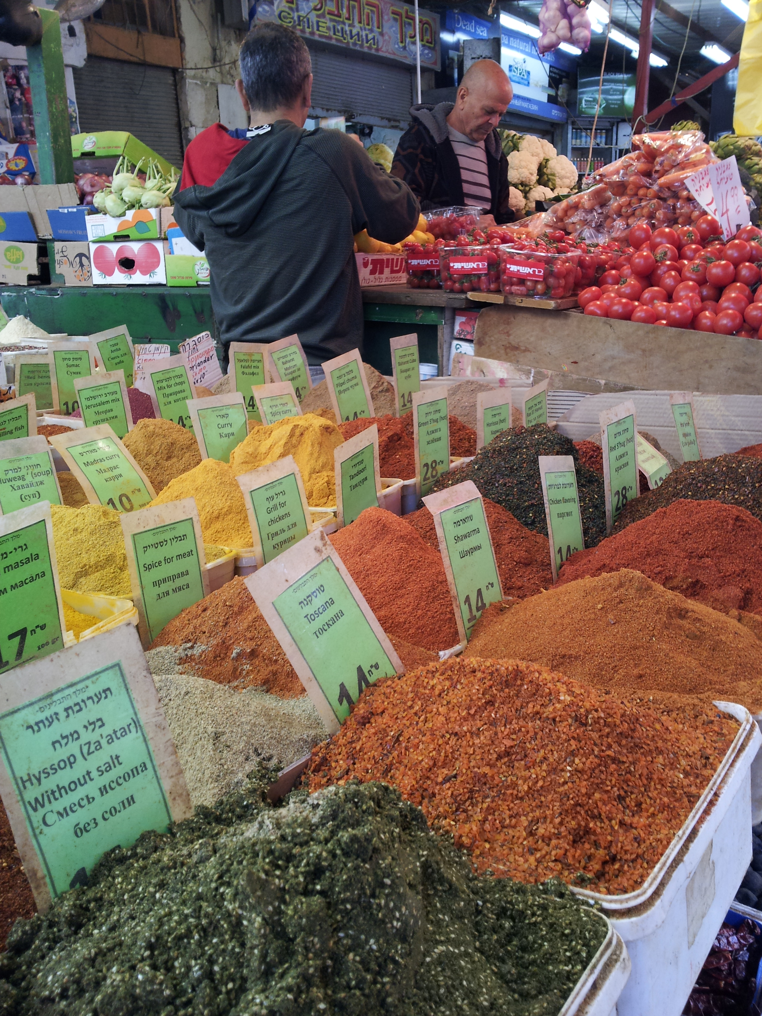 Täglich außer am Samstag, dem jüdischen Feiertag Schabbat, bietet der Markt eine reiche Auswahl an frischem Gemüse, Obst und duftenden Gewürzen, Fleisch und Fisch, Oliven, Nüssen, Gebäck, Halva, und, und, und… Nicht nur Hobby-Köche und -köchinnen finden hier, was sie für ihre Küche brauchen, man trifft auf dem Markt auch die Küchenchefs vieler Restaurants von Tel Aviv, die hier einkaufen – und natürlich Freunde und Bekannte!