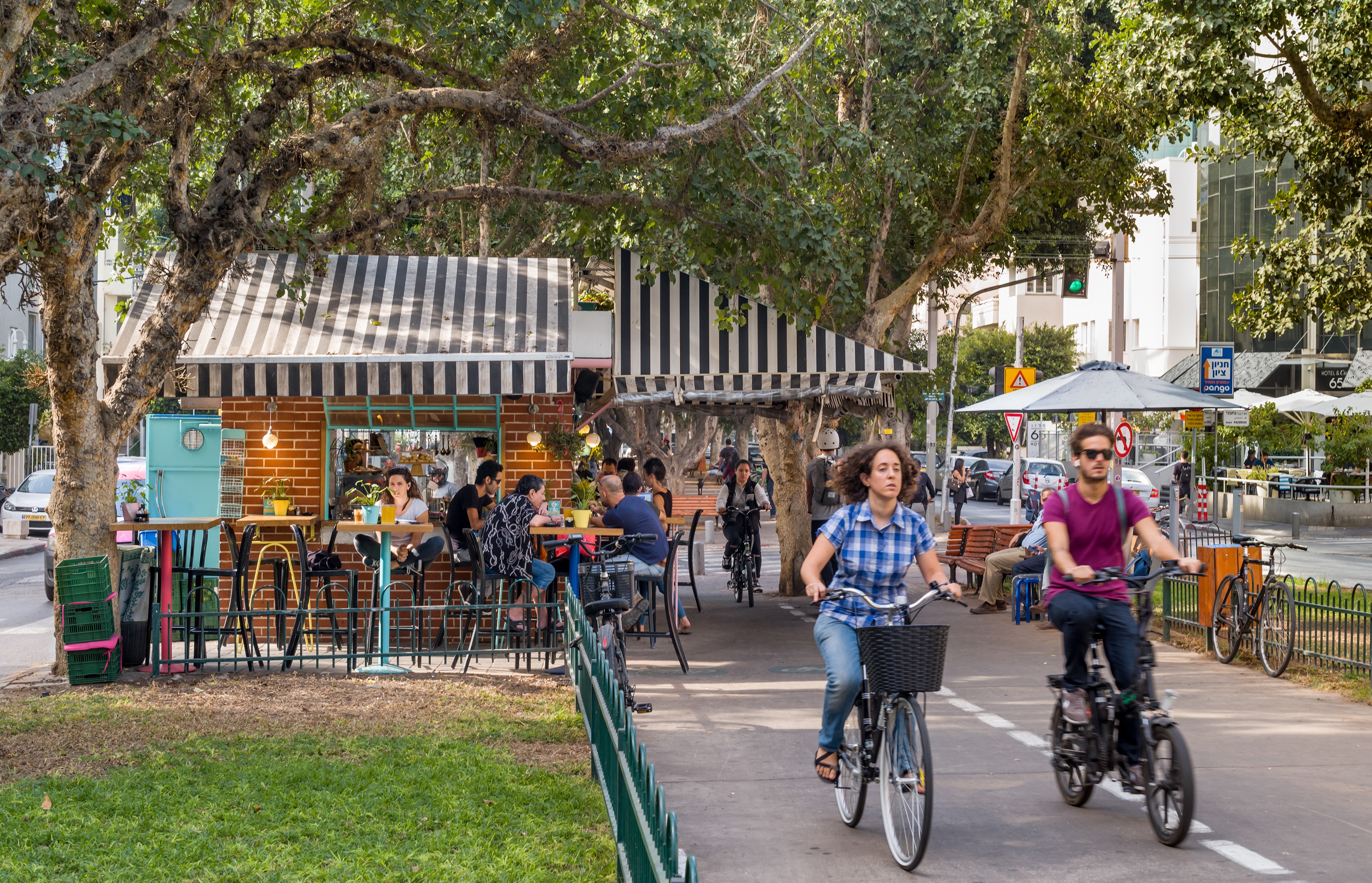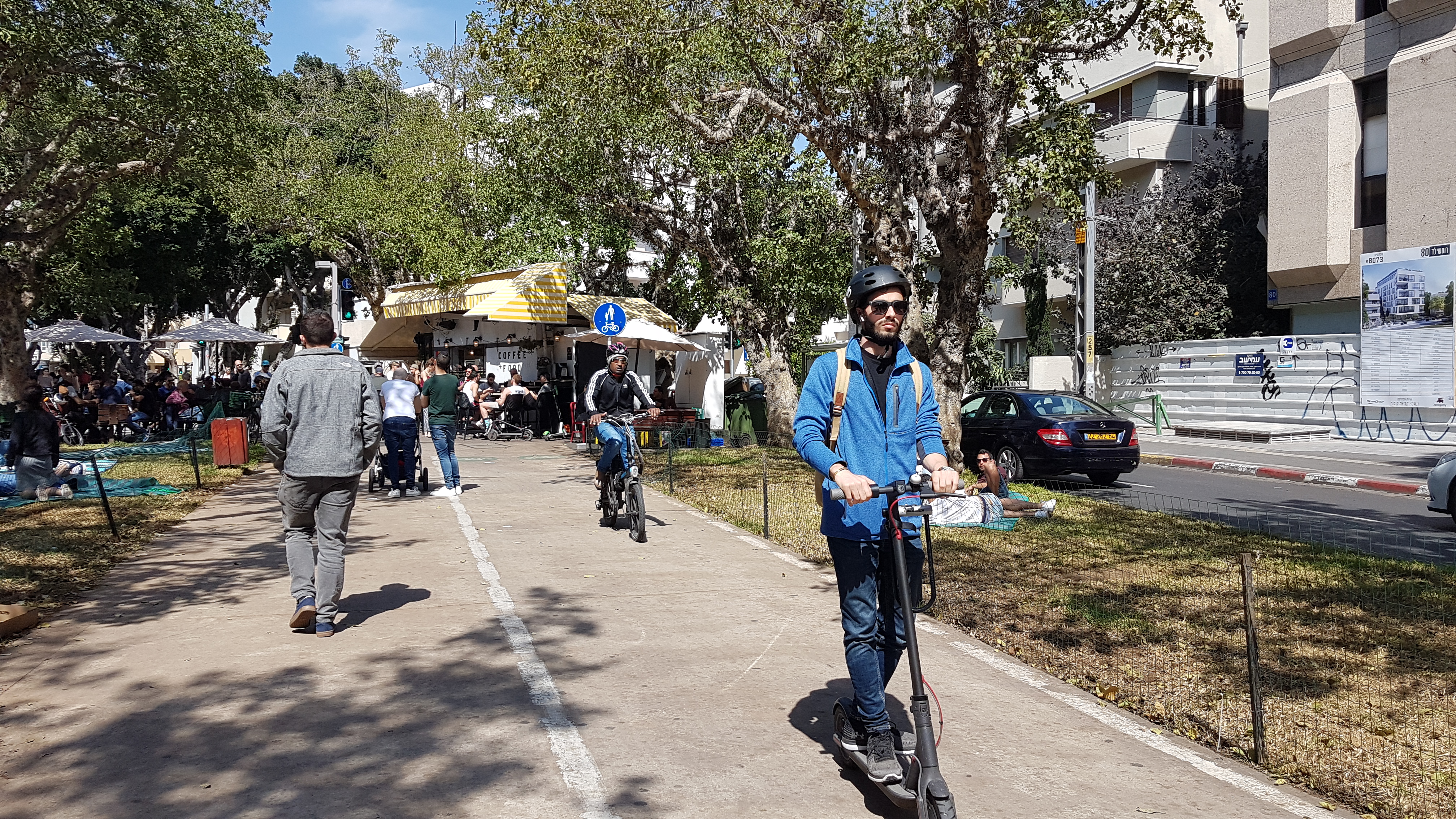 Wir biegen auf den eleganten Rothschild Boulevard, der in Neve Tzedek beginnt – eine der Hauptmagistralen der Stadt und das vielleicht teuerste Pflaster Tel Avivs. Der Boulevard wurde Anfang des 20. Jahrhunderts als Allee angelegt. Heute ist er die Ausgeh- und Flaniermeile der Stadt.