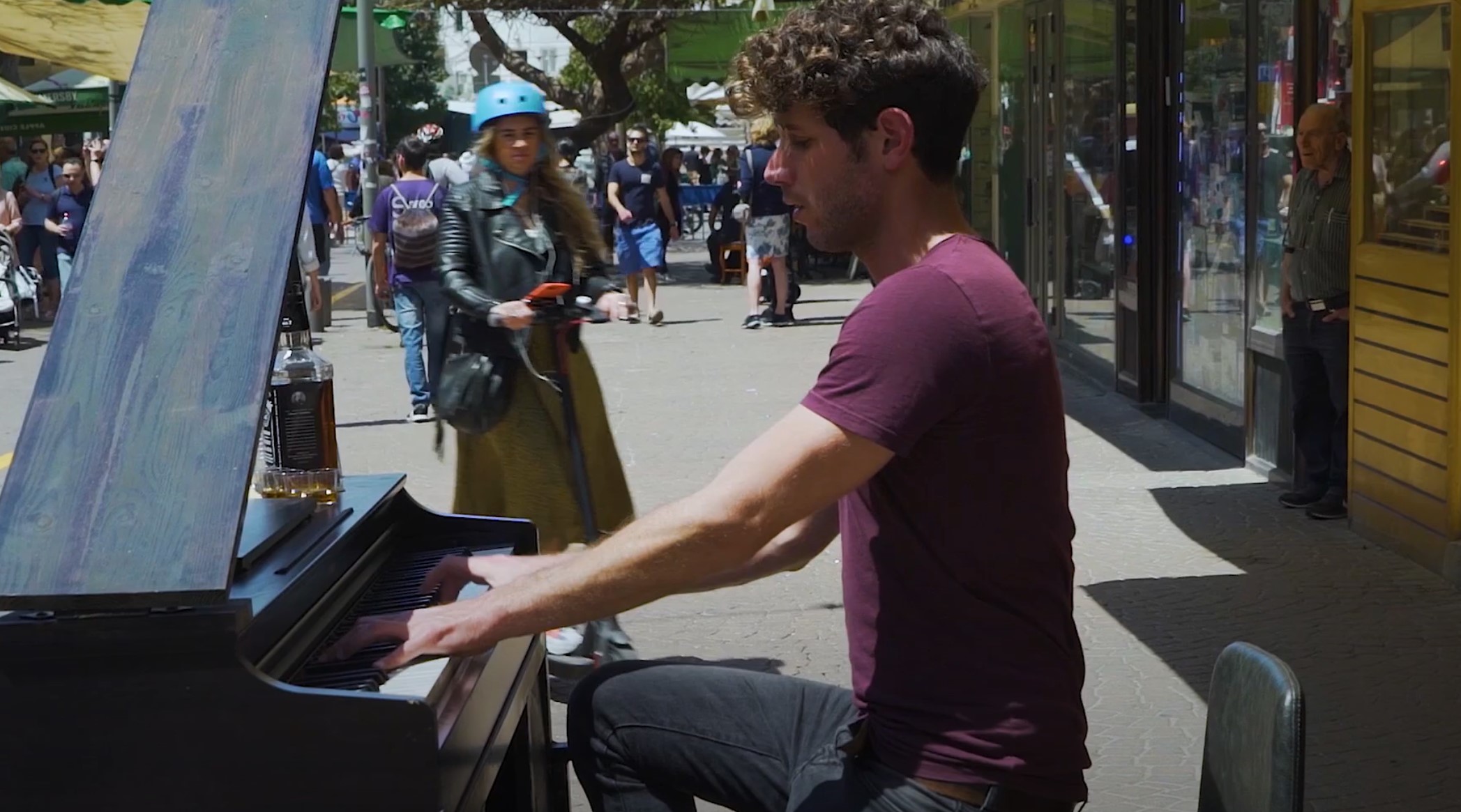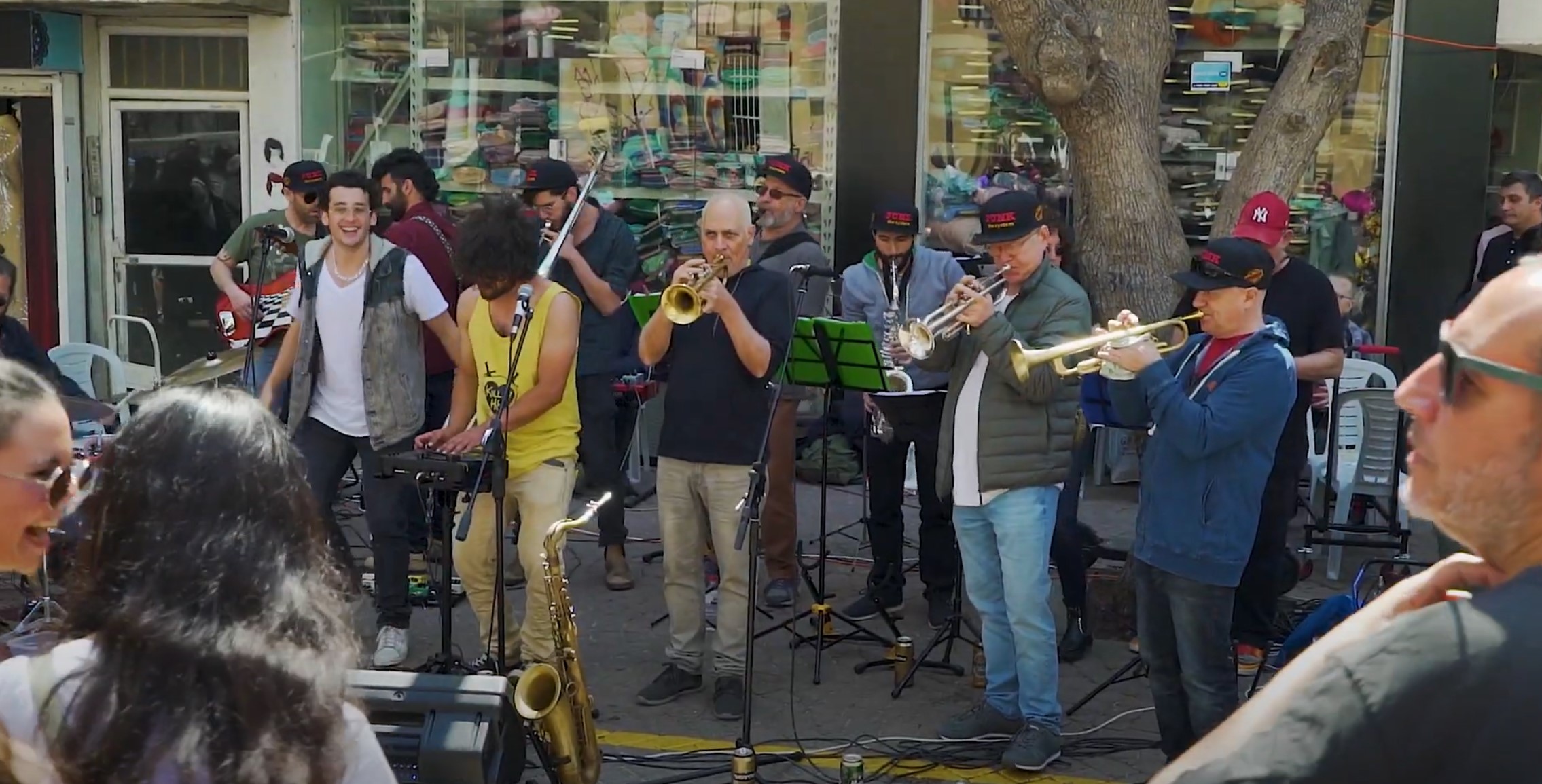 Wer singt oder ein Instrument spielt, muss zum Carmel Markt. Dieser Freitagvormittag wirkt auf uns wie ein kleines Open-Air-Festival. Einer spielt Gitarre, ein anderer Klavier vor der Piano-Bar, und an der nächsten Ecke heizt die Bari Hard Big Band ihren Zuhörern temperamentvoll ein. Das Motto der Straßenkünstler lautet „ain’t nothing but a party“, nichts als Party.