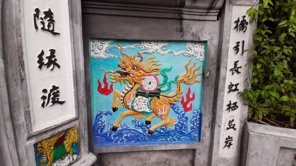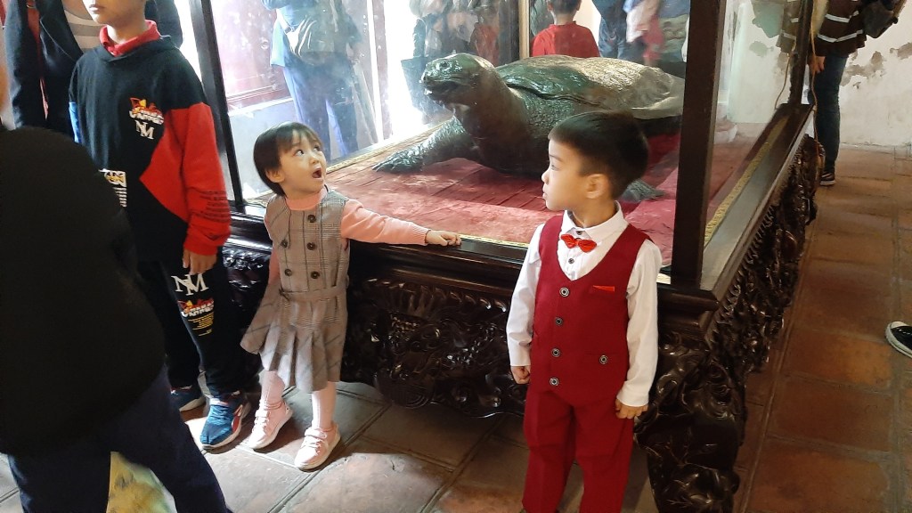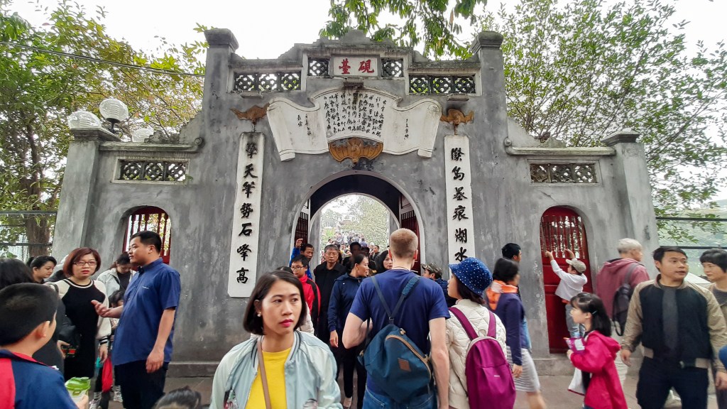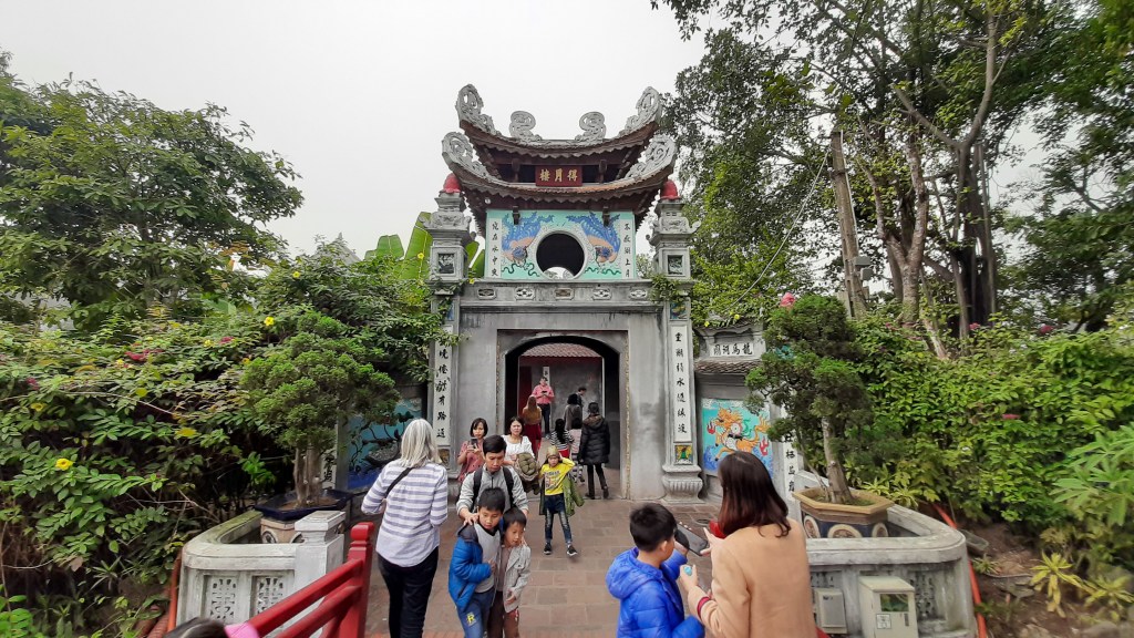 Der Jadeberg-Tempel befindet sich auf einer kleinen Insel mitten im See. Man erreicht ihn über eine schmale Brücke. Wir besuchen den Tempel an einem Wochenende und sind mit vielen Gleichgesinnten unterwegs. Hoan-Kiem-See und Jadeberg-Tempel sind einfach ein Muss für jeden Hanoi-Besucher.