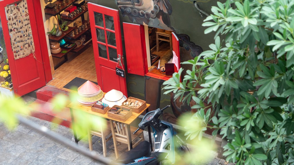 Doch es gibt auch kleine, individuelle Läden, die echtes Kunst- und Handwerk verkaufen, das in Vietnam handgearbeitet wurde. Wie hier, direkt vor unserem Hotel.