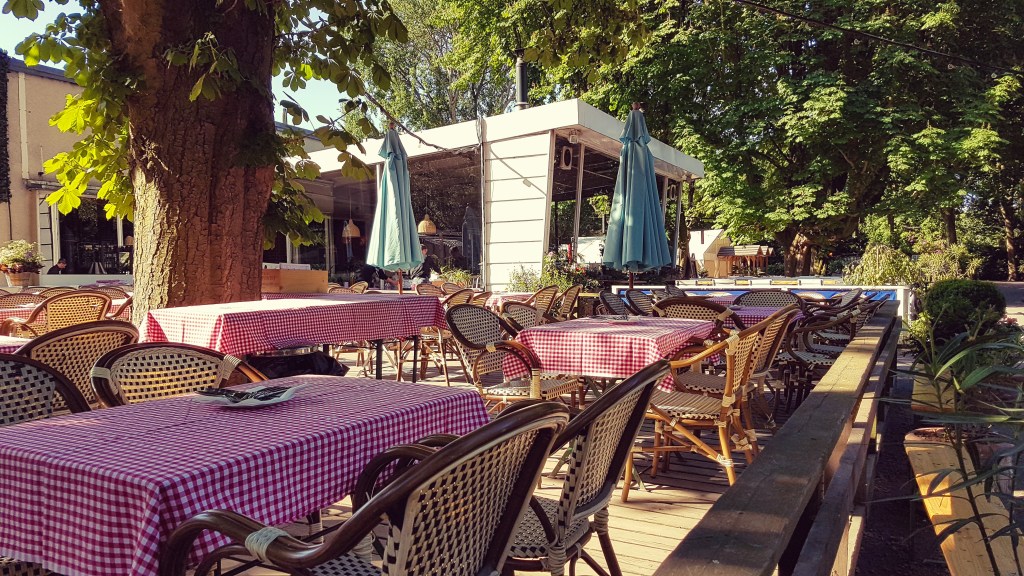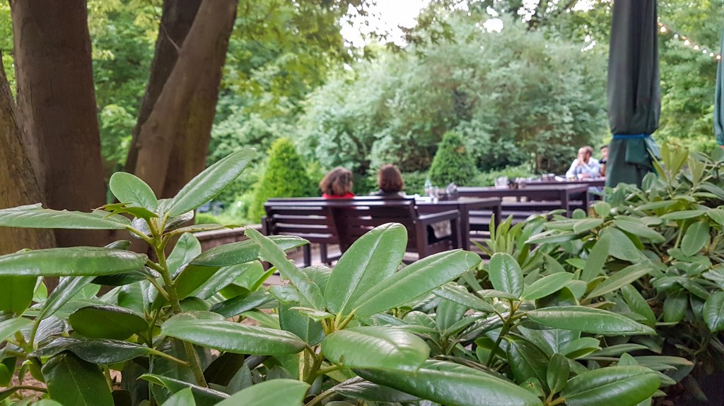1954 öffnete der Schleusenkrug an der Tiergartenschleuse seinen Gastgarten, der nur wenige Schritte vom Bahnhof Zoo entfernt liegt. Hier bestellt man am Ausschank. Getränke nehmen wir selbst mit an den Tisch, das Essen wird gebracht.