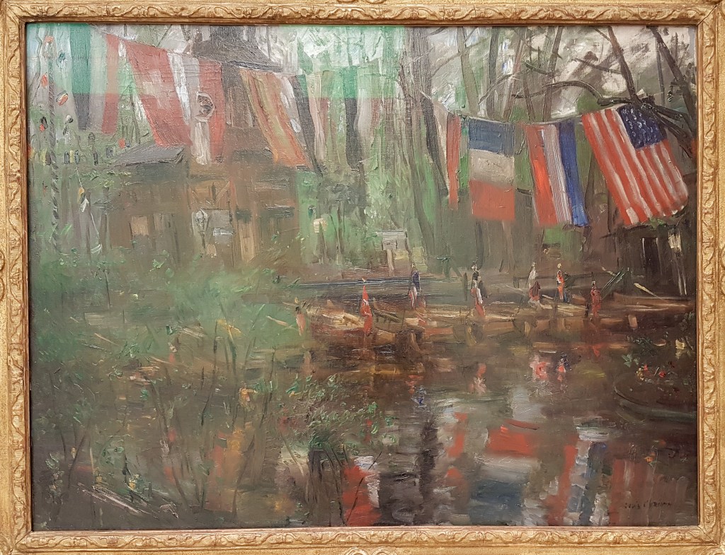 Den Bootssteg am Neuen See gab es schon vor mehr als hundert Jahren. 1908 hielt ihn der Berliner Maler Lovis Corinth auf seiner Leinwand fest. Wie sich die Bilder gleichen! Viel hat sich seither scheinbar gar nicht geändert. Das Gemälde hängt übrigens in der Mannheimer Kunsthalle.