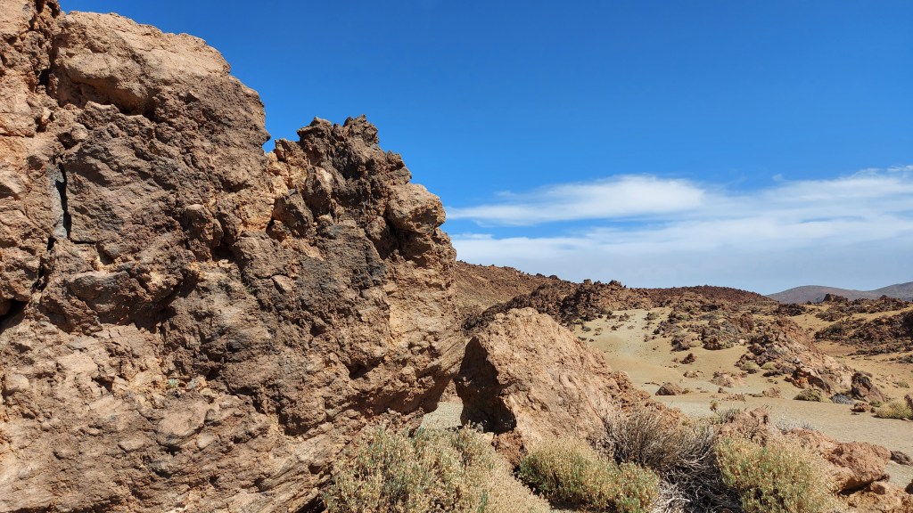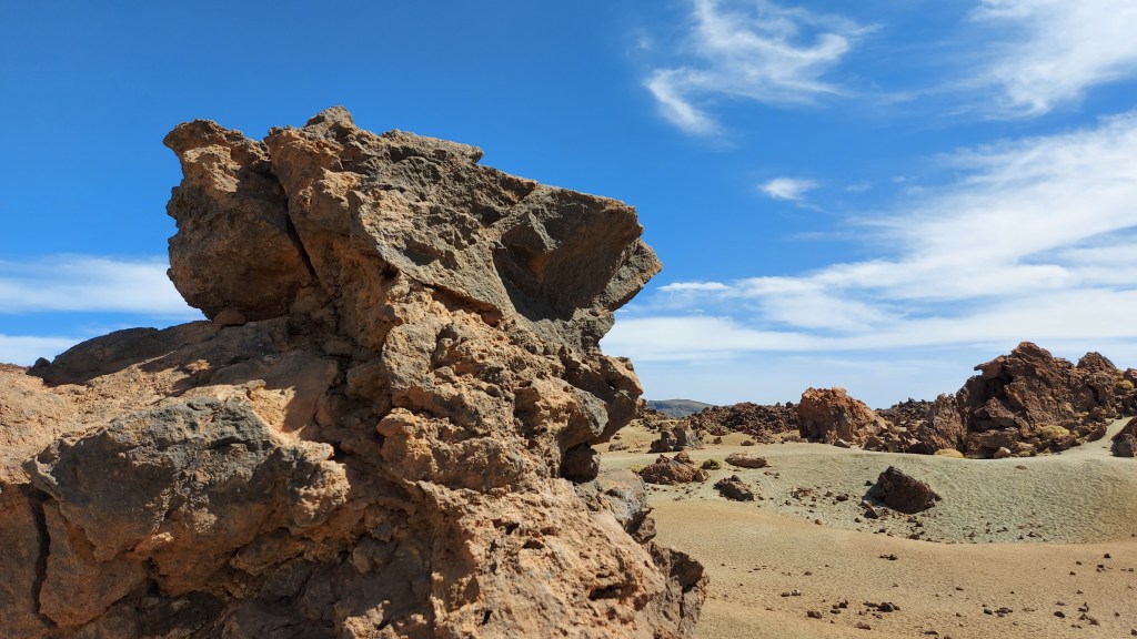 Scharfkantige Felsen, spitzes Lavageröll, karge Böden! Ja, sind wir auf dem Mond gelandet? Das Wirken der Schwerkraft erinnert daran, dass wir uns (natürlich!) auf der Erde befinden, auch wenn die Landschaft wie von einem anderen Stern wirkt. Wir fahren auf der Nationalstraße TF-21 durch die riesige Caldera des Vulkans Teide – einem der meist besuchten Nationalparks der Welt und seit 2007 UNESCO-Weltnaturerbe.