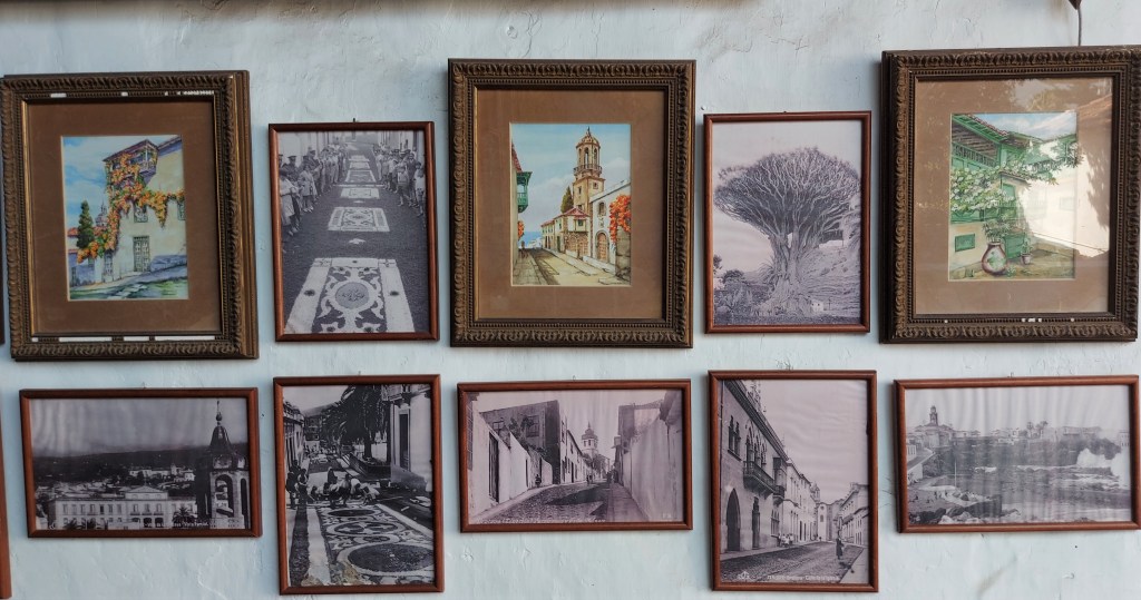 Bilder und alte Fotografien an den Wänden werfen Schlaglichter auf La Orotavas Vergangenheit.