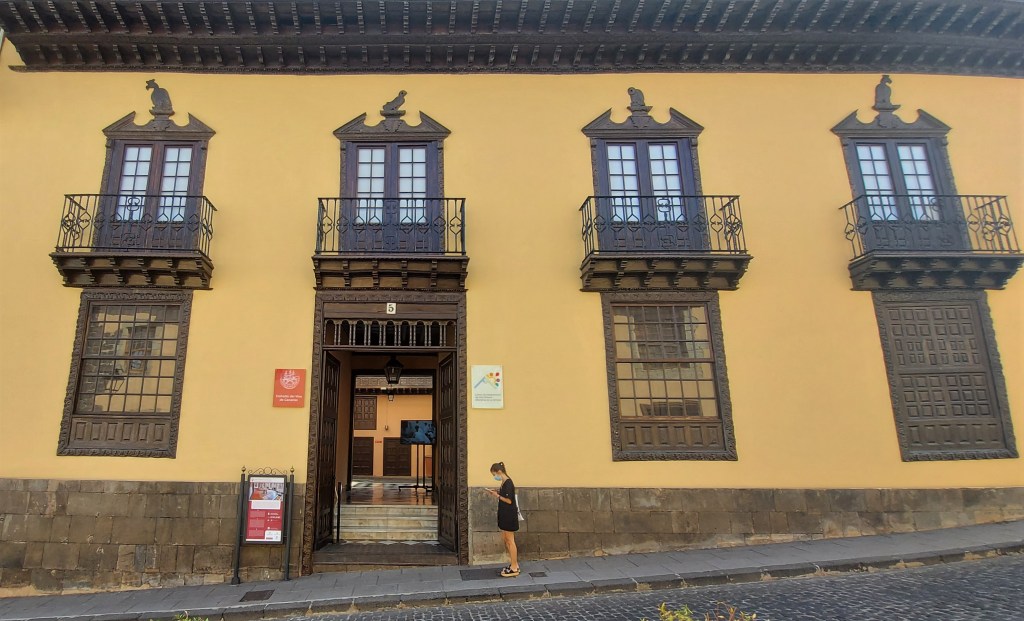 Das ikonischste Gebäude der Stadt – die „Casa de los Balcones“ aus dem 17. Jahrhundert – steht ein paar Gehminuten den Berg hinauf in der Calle San Franciso. Angekommen! Wir legen den Kopf in den Nacken, unser Blick geht nach oben. Die markante Balkonreihe im letzten Stockwerk ist aus kanarischem Kiefernholz geschnitzt.