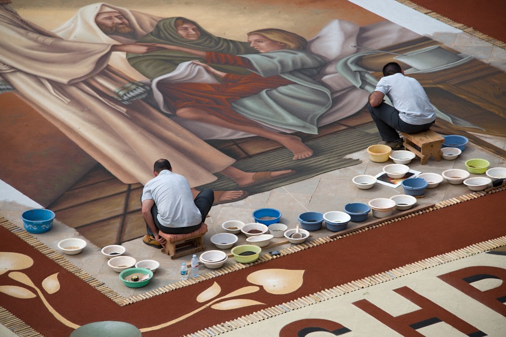 Viele Fotos dokumentieren, wie sich die Kunst der „Alfombristas“ über die Jahrzehnte entwickelt hat.