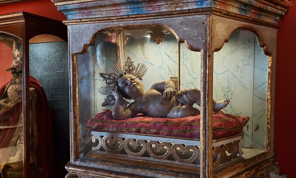 So bestaunen wir Gemälde, Skulpturen, Glas, Möbel, Stoffe, Kleidungsstücke, Schmuck, Fächer persönliche Erinnerungsstücke, Fotografieren und vieles mehr – wie diesen ulkigen Putto auf seinem roten Bettchen!