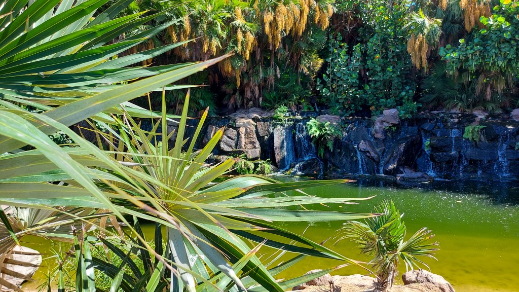 Bei unserem Rundgang haben wir das Gefühl, als wäre der Park schon immer hier gewesen. Die zum Teil riesigen Palmen müssen doch über Jahrzehnte gewachsen sein!