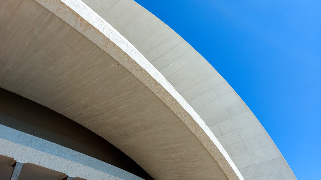 Der spanische Stararchitekt Santiago de Calatrava hat hier eine riesige Welle aus Beton geschaffen, die in die Stadt zu schwappen scheint. Von Ferne ist für uns gar nicht wahrnehmbar, wie gigantisch groß das „Auditorio“ tatsächlich ist.