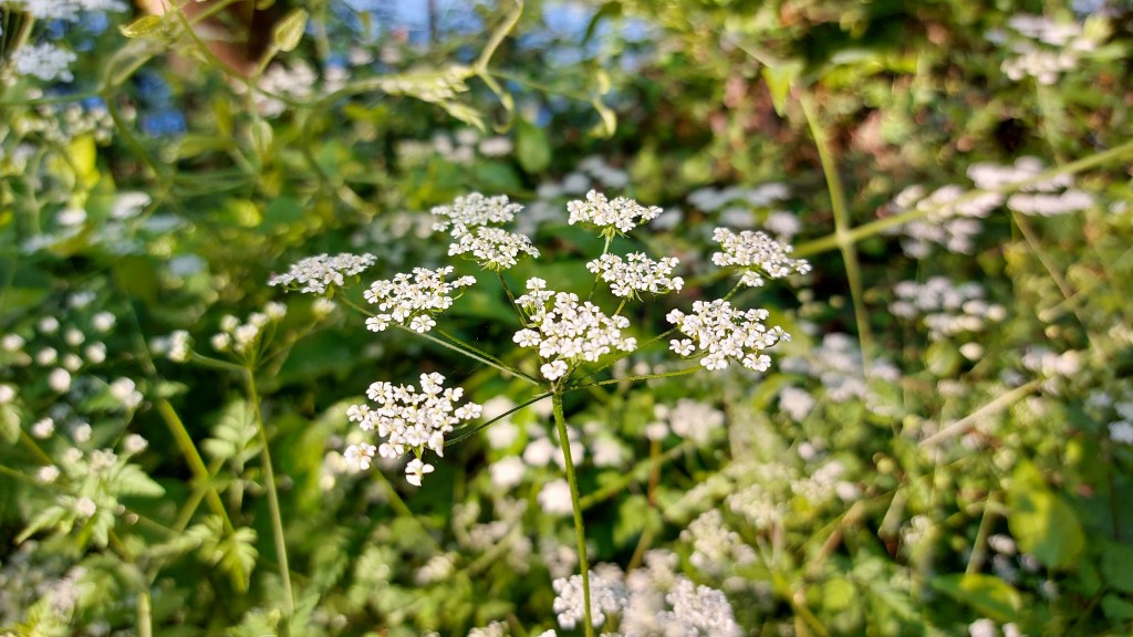 So wachsen Gräser und Wildblumen üppig, was Bienen und Schmetterlinge zu schätzen wissen. Und die Viecher, die das schöne duftende Heu serviert bekommen, das hier geschnitten wird.