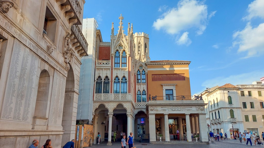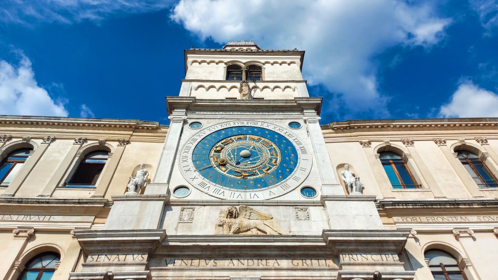 Beherrscht wird der Platz von einem Glockenturm aus dem 15. Jahrhundert, der Torre dell’Orologio – ein Werk von Jacopo Dondi dall’Orologio, einem mehrfach Begabten, der als Arzt, Astronom und Maschinenbauingenieur wirkte. Was für eine Kombination der Talente!